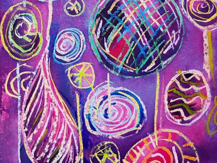 Sarah, Nicola, Alex, Emily and Gareth have been busy creating Christmas card designs based on the theme of “Lights and Baubles”. The designs were created using wax and ink. We were delighted with the results. We hope you like them too.