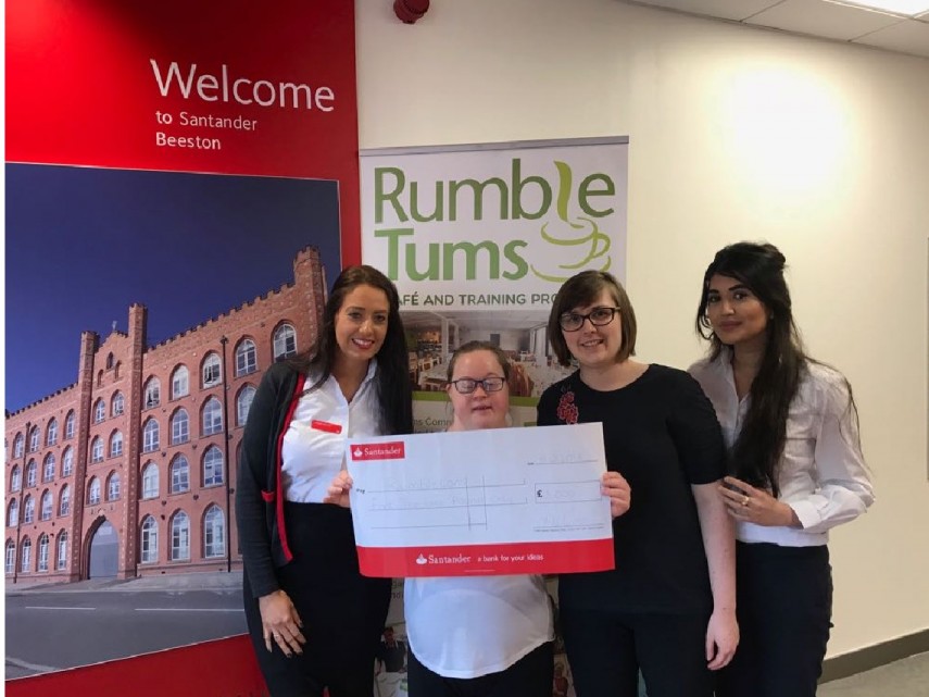 In November 2017 we learned that our application to the Santander Foundation was successful. The grant will be used to help fund a part time member of staff which means that we can continue to offer excellent support to our trainees. Amy, Emma and Sarah went to visit the Beeston Santander branch to receive our Cheque (which is actually bigger than Amy!) Thanks so much to Santander and the lovely staff there for their generosity and warmth. We look forward to Kayleigh and Maria visiting us to see the café first hand.