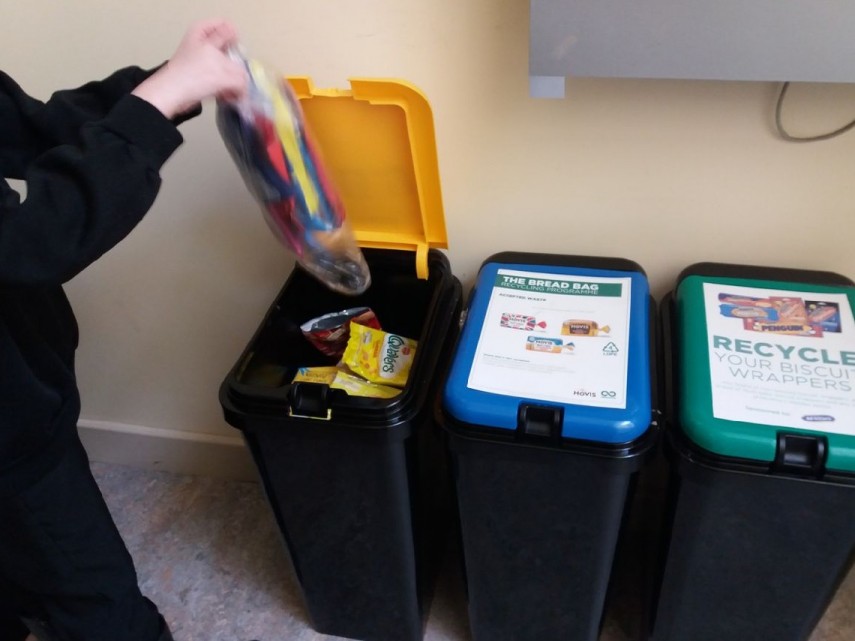 Many thanks to all at Springbank Primary School in Eastwood who are collecting crisp packets, biscuit wrappers and bread bags for Rumbletums. Pupils in the Eco warrior team have been put to work sorting and collecting and dinner staff are all playing their part to help children recycle. While I was there a young lady came from the dinner hall with todays lunchtime haul. Well done miss! In fact I was shown 4 boxes ready to be shipped! Keep up the good work.